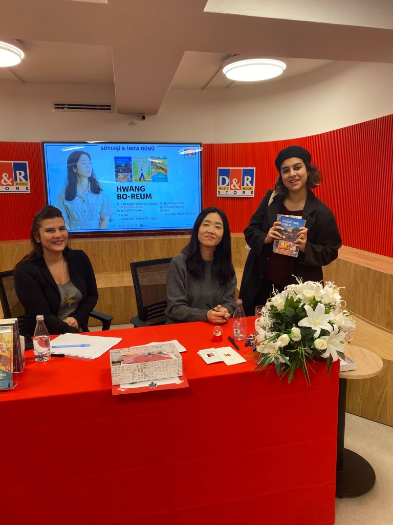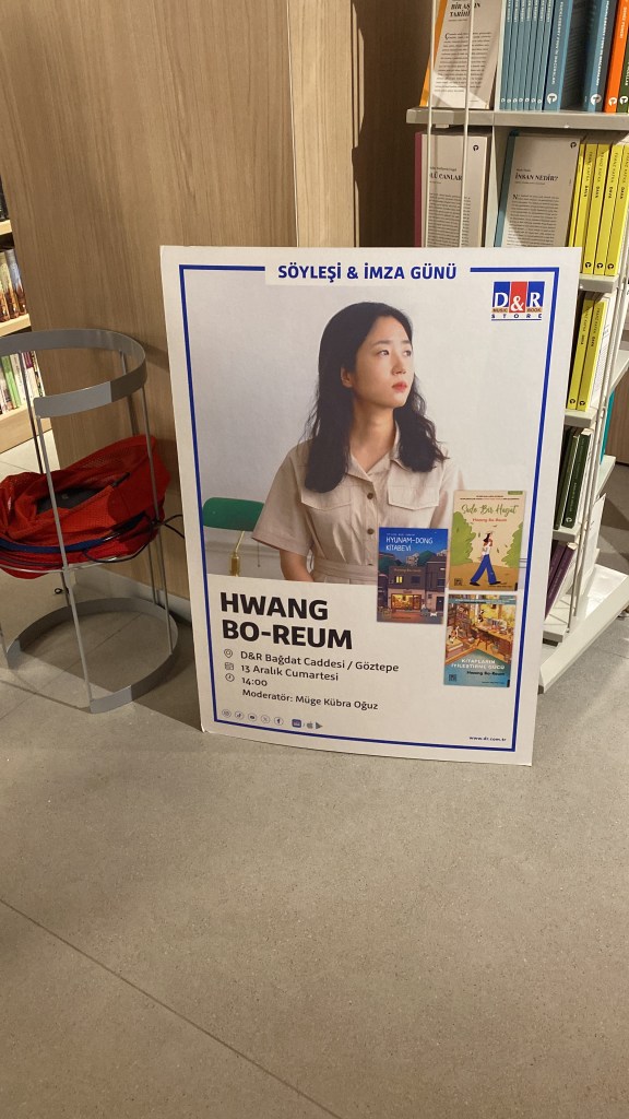 Bugün Bağdat Caddesi D&R’da Hwang Bo-Reum’ın imza gününe katıldım. Çok yakın arkadaşım bana doğum günümde alacağını söylediği kitaba ek olarak bu yazarın Hyunam-Dong Kitabevi isimli romanını almıştı (Bunu okuyorsan tişikkirlir sistiirrr). Kitap ile ilgili bilgi vermeyeceğim çünkü okumamış ya da okumakta olanlar olabilir, sonra “Deme öyleeee, onu söylemeeeee” moduna girmenizi istemem 🙂